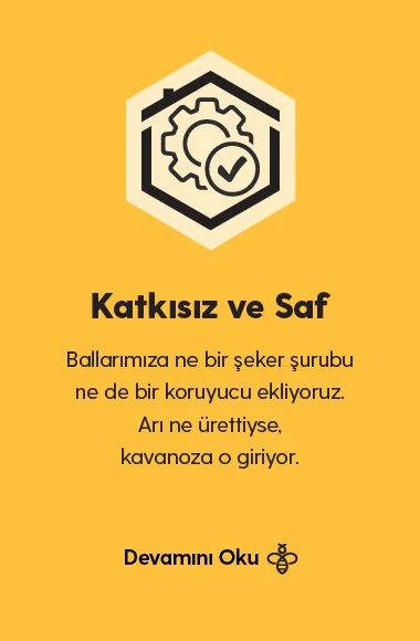 Ballarımıza ne bir şeker şurubu ne de bir koruyucu ekliyoruz. Arı ne ürettiyse, kavanoza sadece o giriyor.