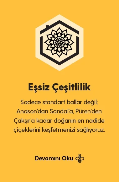 Doğadan gelen yüksek antioksidan kapasitesi ve karakteristik tadıyla, gerçek balın farkını her kaşıkta hissedeceksiniz.