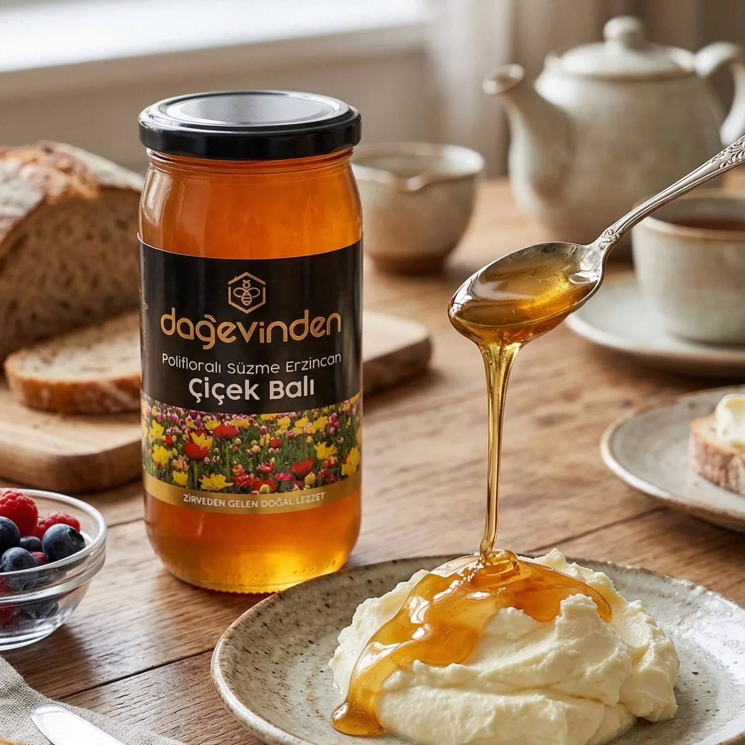 Erzincan yöresine özgü çiçeklerden elde edilen bu bal, kendine has lezzeti ile kahvaltı sofralarınıza keyif ve sağlık katıyor. Kahvaltılarınızın yanı sıra çayınızın ya da yoğurdunuzun yanında da tercih edebileceğiniz bu lezzetli bal, enerjinizi yükseltirken bağışıklık sisteminizi güçlendirmenize de yardımcı oluyor.